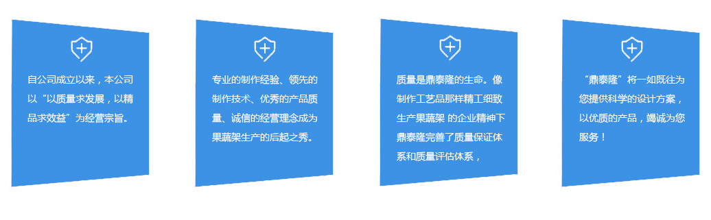 鼎泰隆憑借專業的制作經驗、領先的制作技術、優秀的產品質量、誠信的經營理念成為果蔬架生產的后起之秀。